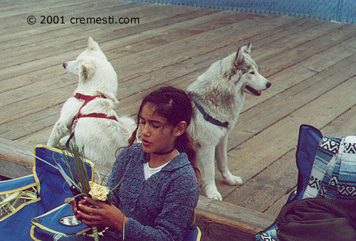 Credits: Rami E. Cremesti Zenit TTL with 44 mm Helios Lens. Title: "Gypsy Young Girl" Comments (by Rami E. Cremesti): I shot this photograph at the Santa Monica pier in May 2001. This beautiful girl was making roses out of palm tree leaves. Her earings, manicure, cool braided bangle, and hip necklace, and her "savoire-faire" air was soooo attractive... I later found out that her name is Guaida, she is 12 years old from Hawaii. Click here to view Guaida II. Click here to View Guaida III. |
